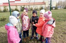 Вместе с воспитателем Талибуллиной О. Р. дети из 2 младшей группы "Золотые зернышки" отметили изменения в состоянии веток (раскрывшиеся почки, появление листочков). Понюхали их, осторожно прикоснулись руками. -