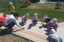 Рәсем ясаганда балалар үзләренең мөстәкыйльлеген, компазитция сайлау серлелеген, дөньяны өйрәнү шатлыгын тоярга өйрәнәләр. Без “Сандугачлар” төркеме белән урамга чыккан саен балалар белән асфальтта төрле төстәге акбур белән рәсемнәр ясыйбыз. Менә буген дә асфальтта акбур белән ясаган рәсемнәрендә балалар төрле чәчәкләр, кубәләкләр күренешен чагылдырдылар.Балаларның рәсемнәре берсеннән-берсе матур иделәр. -
