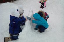 В окно повеяло весною, уже тает снег, бегут ручьи, дети во второй младшей группы «Самоцветики» вышли на прогулку. Каждый нашел себе занятие по душе, играя со снегом в снежки, кто лепит снеговика, часть детей строит снежную крепость. Игровая деятельность совместная с воспитателем Ханнановой Х.М. приносит детям массу положительных впечатлений, объединяет и сближает, воспитывает дружелюбие, доброжелательность. И, наверное, поэтому зима не хочет уходить уж очень детям нравятся зимние забавы.
