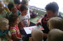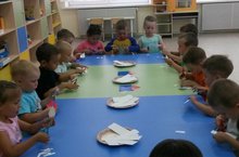 .Кул моторикасын үстерү өчен кисеп ябыштыу(аппликация), бармаклар гимнастикасы зур әһәмияткә ия. Кече мәктәпкәчә яшьтәге балалар зурлар җитәкчелегендә гади предметлар кисергеп ябыштырырга сәләтле. Кисеп ябыштыруның (аппликация) кабул итү үсешенә уңай йогынты ясавы билгеле. Бу яшьтә кисеп ябыштыруның балалар иң гади төрләрен башкаралар. Буген без балалар белән кайчы ярдәмендә төрле зурлыкта, туры сызык буенча башта кыска, аннары озынрак тасмалар кисәргә өйрәндек. Төсле кәгазьдән киселгән тасмалардан предмет сурәтләдек..Балалар бик теләп катнаштылар. Кисеп ябыштыру балаларның белемнәрен ныгыта, камилләштерә, тормыш куркынычсызлыгы нигезләрен формалаштыра. Балаларда мөстәкыйльлек, җаваплылык хисе үстерелә.