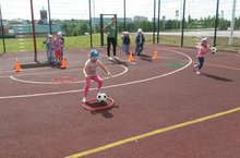 В нашем детском саду дошколята никогда не скучают. На прогулке мы не просто бегаем и прыгаем, а проводим время с пользой. В этом нам сегодня неплохо помог кольцеброс. С воспитанниками из 1 младшей группы "Самоцветики", воспитатель Агрикова С.М. провела шуточную эстафету по бросанию колец в цель, где ребята учились метко целиться