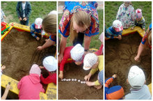 Игры с песком позитивно влияют на эмоциональное самочувствие детей и являются прекрасным средством для познавательной активности. С этой целью мы знакомим детей с играми в песочнице, которые являются прекрасной развивающей средой для работы с детьми. Песок завораживает детей, игры с ним и сооружение построек из него – одно из самых увлекательных занятий детей в летнее время. Так воспитатель 1 младшей группы «Самоцветики» Гатауллина Алёна Александровна с детьми любит из песка рисовать различные картинки.