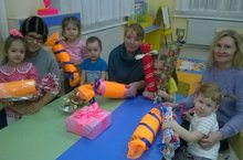 В предверии нового года воспитатель Магина А.В. с родителями и детьми начали изготавливать новогодние игрушки для городской ёлки.