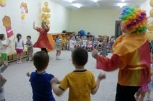 Сегодня нашему саду исполнился год, как мы открылись. Творческая группа педагогов решила поздравить воспитанников. Они провели развлечения «В гостях на день рождения». Дети танцевали, отгадывали загадки, играли, а в конце мероприятия спели песню про «День рождения».