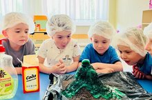 Этот опыт не только очень познавательный но еще очень зрелищный . При первом извержении дети не могли усидеть на местах . Просили еще продлить опыт что бы извержение не прекращалось .Проведение опытов в детском саду позволяет в доступной и понятной форме объяснить многие физические явления . -