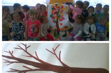 На занятие по рисованию воспитатель Магина А.В. использует разный вид техники рисования. Так на этом примере педагог использовал коллективное рисование ладошками на тему: «Осеннее дерево».