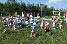 В этот первый летний праздник малыши искали друзей на полянке, пели песни. Дети с увлечением играли в игры с веселой Ириской. В конце праздника дети получили угощение и хорошее настроение на весь день. Ведь детская улыбка и счастливые глаза малышей – наверное, самое большое богатство в мире.