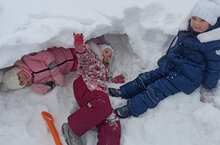 Штабик из снега— это один из ярких элементов уличного детства, который у многих ассоциируется со свободой. Современные дети не строят штабики и шалаши. Но наши дети не любят скучать, поэтому они поддержали идею построить себе штаб, взяли в руки лопаты и пошли копать пещеру. Все в снегу, но очень довольные.