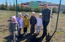 Сегодня в праздник День земли, в прохладный апрельский денек, воспитанники средней группы Соловьи, внесли свой вклад в озеленение и благоустройство территории нашего детского сада, и посадили дерево.