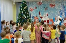 Дети всех возрастных групп водили хороводы вокруг елки, пели песни, танцевали и играли в различные зимние игры с героями: Снегурочкой и Дед Морозом.