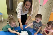 В первой младшей группе прошло интересное занятие "С нег и его свойства". Цель данного занятия - формировать у детей навык наблюдения, называть предметы и явления окружающего мира - вода, снег, солнце..., развивать тактильное восприятие, подвести детей к пониманию того, что снег тает от любого источника тепла.
