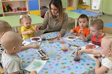 Рисование украшение для елочки ватными палочками, в первой младшей группе.