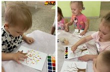 Рисование пальчиками в первой младшей группе Золотые зернышки ,,Осеннее дерево,,. Цель данного занятия - учить детей рисовать в технике рисование пальчиками листья деревьев. Учить внимательно, рассматривать образец и следовать ему, закреплять знания цветов, красный, желтый, зеленый, учить радоваться полученному результату.