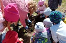 На территории нашего детского сада второй год подряд воспитатели вместе с воспитанниками высаживают молодые саженцы различных деревьев в «Уголок леса». Вот и сегодня воспитанники старших групп «Жемчужинки» и «Волшебники» пополнили уголок новыми деревцами (дуб, липа, лиственница). В уголке уже растут каштаны, рябина, канадский клен, тополь, береза. Ребята наблюдают за ростом деревьев, рассматривают листья и стволы.Уголок леса позволяет вызвать у детей эмоциональное отношение к наблюдаемым явлениям и объектам. Формирует первоначальные навыки экологически грамотного и безопасного поведения в лесу. Развитие интереса и любви к природе.