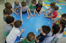 Прогулка - это один из важнейших режимных моментов, во время которого дети могут достаточно полно реализовать свои двигательные потребности. В подготовительной группе "Звездочки" ни одна прогулка не обходится без организованных подвижных игр. Подвижные игры на улице не только содействуют физическому развитию детей, но и снимают усталость, помогают эмоционально переключиться с одного вида деятельности на другой, стимулируют активную работу мозга, способствуют расширению кругозора, совершенствованию психических процессов. Во время игры повышается скорость нервных процессов, протекающих в организме, возрастает быстрота реакции. В ходе игр у детей формируются положительные нравственные качества. Подвижные игры способствуют объединению детского коллектива.