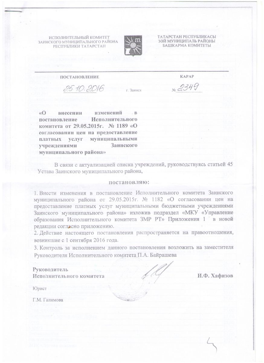 - Постановление Исполнительного комитета ЗМР №2349 от 25.10.2016 г.