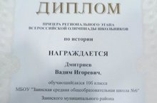 Мы очень рады, что воспитанник Малой академии Дмитриев Вадим стал призером регионального этапа Всероссийской олимпиады школьников по истории. Поздравляем с заслуженной победой его и педагога Юлию Михайловну Запека!!!