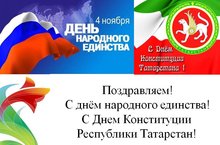 Уважаемые коллеги!Сердечно поздравляем вас сДнём народного единства и Днём Конституции Республики Татарстан!Желаем вам здоровья, счастья, мира и согласия, добра и взаимопонимания! -