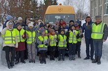В беседе приняли участие ученики и в завершении встречи школьники получили в подарок световозвращающие жилеты.