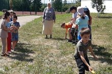 Воспитанники лагеря "Солнышко" перед детьми детского сада "Колосок" выступили с театрализованными выступлениями "Колобок" и "Репка"????