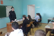 Сегодня перед учащимися 7-9 классов выступил испектор ПДН , лейтенант Мургазов Б.М по теме " О недопущении администртивных, уголовных правонарушений " , а также была проведена беседа об антитеррористической защищенности
