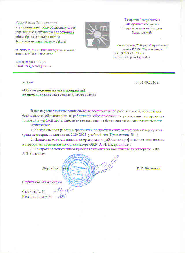 Приказ по профилактике экстремизма в школе на 2020-2021 учебный год