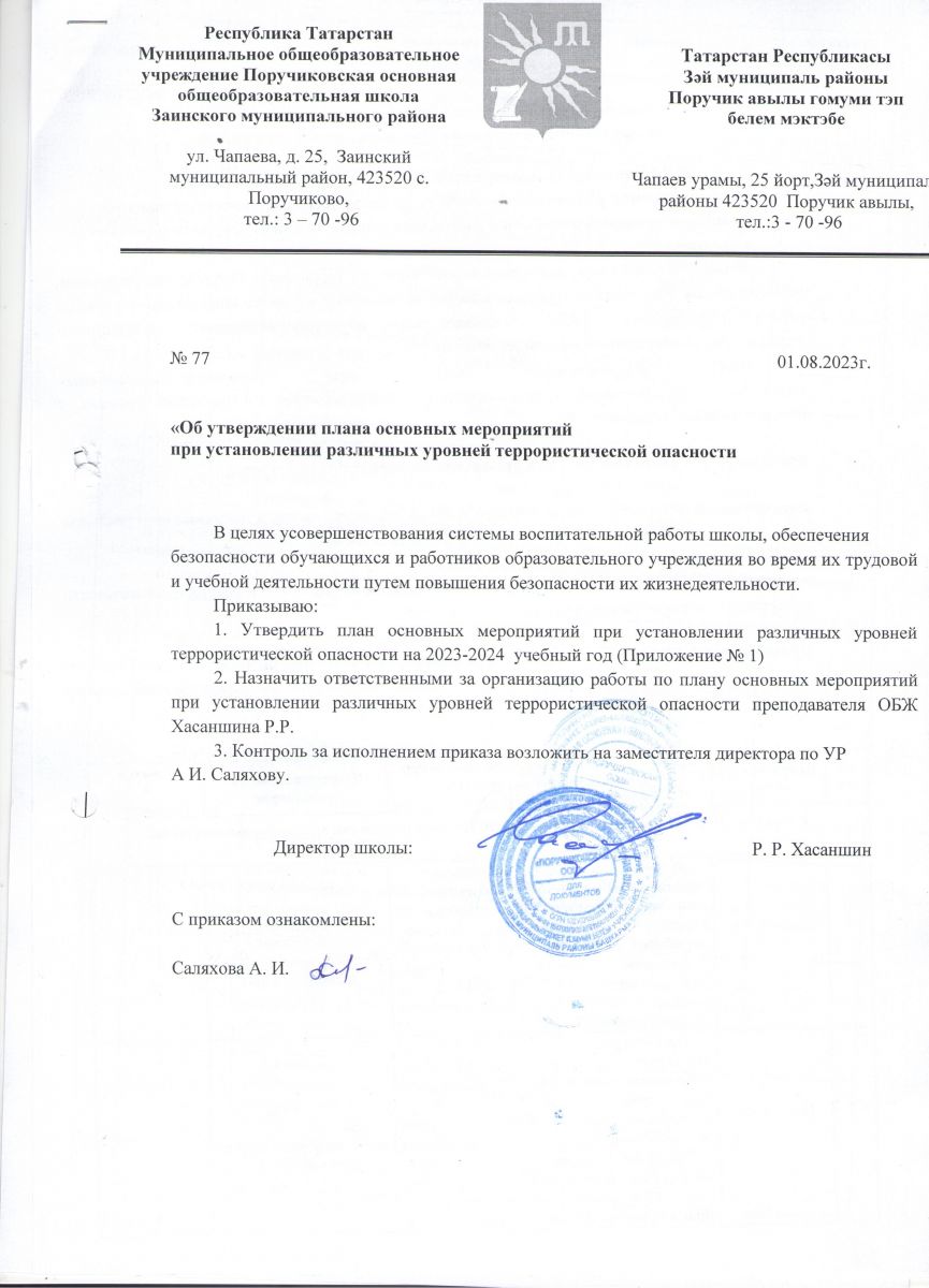 Приказ об утверждении плана по профилактике экстремизма и терроризма на 2023-2024 учебный год