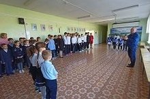 В рамках Единого дня БДД в учебных организациях города и района прошли мероприятия по профилактике детского дорожно- транспортного травматизма. Так юидовцы Нижнебишевской школы выступили в подшефном детском саду, на линейке напомнили ПДД ученика школы. В заключении начальник Заинского отделения ГБУ "БДД" Вадим Иванов провел инструктаж около школьного автобуса. ФОТО2
