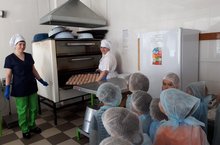С целью знакомства детей с профессией «Повар», «Кухонный работник» воспитатель Кислякова Надежда Генадьевна и старшая мед.сестра Гулуса Рафисовна организовали для детей средней группы «Незабудка» экскурсию в одно из важных мест нашего детского сада, на кухню. Шеф – повар Рамиля Гузялевна и повар Светлана Фанилевна при знакомстве с кухонным помещением уделили большое внимание технике безопасности на кухне. Светлана Фанилевна показала экскурсантам, на каких больших плитах готовится еда, подвела детей к сравнению с домашней посудой, что в детском саду много детей и кастрюли должны быть большие, а дома кастрюли намного меньше. Рамиля Гузялевна рассказала о пользе и ценности продуктов, которые используют в приготовлении блюд, показала детишкам как готовятся котлетки. Дети слушали очень внимательно и с интересом рассматривали предметы на кухне. Благодаря экскурсии дети расширили свои знания, обогатили игровой опыт, прониклись уважением к профессии повара и значимости его труда.