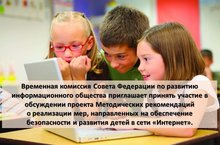 На сайте Совета Федерации проходит общественное обсуждение текста документа проекта методических рекомендаций о реализации мер, направленных на обеспечение безопасности и развития детей в сети «Интернет», в ходе которого любой интернет-пользователь может выразить свое мнение и направить предложения.