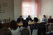 Сегодня 8 декабря 2017 года в конференц-зале управления образования состоялась встреча Руководителя Исполнительного комитета Заинского муниципального района Республики Татарстан И.Ф.Хафизова с трудовым коллективом МКУ "Управление образования ИК ЗМР РТ". Коллективу был представлен начальник отдела ЦБ - главный бухгалтер А.Н. Кубасова. И.Ф.Хафизовым были поставлены цели и задачи на предстоящий 2018 год, который объявлен в Заинском муниципальном районе "Годом образования", намечены ключевые вопросы дальнейшего направления деятельности.