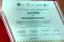 По итогам Всероссийского Фестиваля в ходе тестирования в области физической культуры и спорта на Летнем фестивале Всероссийского физкультурно - спортивного комплекса «Готов к труду и обороне» (ГТО) Кирилл продемонстрировал высокий уровень знаний, за что был награжден дипломом.