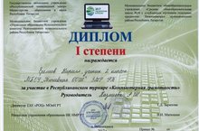 7 апреля 2017г. в г.Нижнекамск на базе МБОУ "СОШ №10 с УИОП" прошел Республиканский турнир "Компьютерная грамотность", по итогам которого Дипломом 1 степени был награжден ученик 2 класса МБОУ "Тюгеевская ООШ" Еремеев К., руководитель - Назмиева А.Ш. Поздравляем!