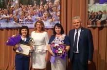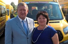 Глава Заинского муниципального района Р.Г.Каримов и заместитель Руководителя Исполнительного комитета – начальник управления образования Г.М.Галимова получили из рук Президента ключи от двух новых автобусов и сертификат на комплект ноутбуков для учителей района.
