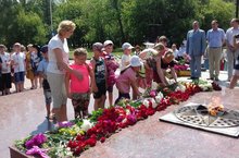 В Заинском муниципальном районе прошел митинг в память всем погибшим и выжившим в боях, умершим в тылу от голода и лишений. В этот день почтить память всех жертв Великой Отечественной войны пришли учащиеся пришкольных лагерей и воспитанники детских садов. Дети гордо стояли, слушая речь Главы Заинского муниципального района Разиф Галиевича Каримова, после чего сняв головные уборы, почтили память героев минутой молчания. Юные жители города, наши дошколята, взявшись за руки, возложили цветы к памятнику Воину – Освободителю.