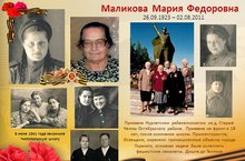 Маликова Мария Федоровна (26.09.1923 – 02.08.2011) - Призвана на фронт в 18 лет, после окончания школы, Нурлатским райвоенкоматом из д. Старые Челны Октябрьского района. Прожектористка, освещали, охраняли промышленные объекты города Горького, основная задача была ослеплять фашистские самолеты. Дошла до Таллина.
