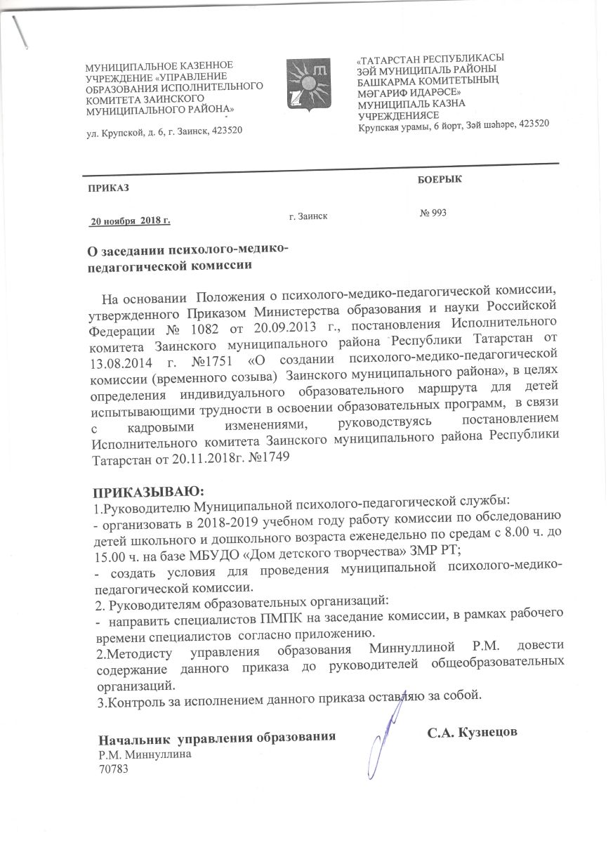 Положение о МКУ "Управление образования Исполнительного комитета Заинского муниципального района Республики Татарстан" (скачать)