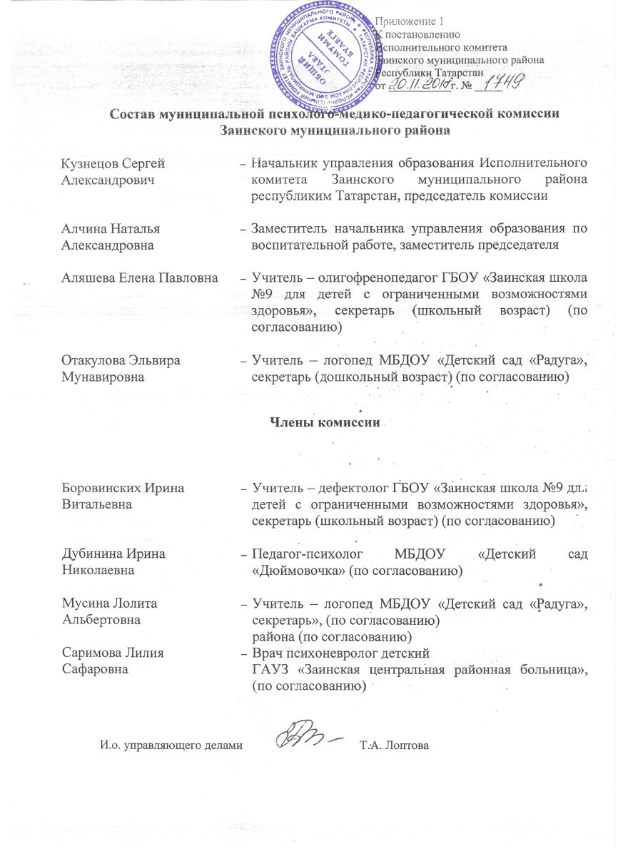 Приложение 1 Состав психолого-медико- педагогической комиссии