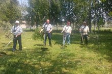 Мәктәп территориясен чистарту максаты белән егетләр кулларына "кораллар" алдылар.