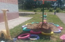 Балалар бакчасы хезмәткәрләре балаларга уйнау өчен мәйданчык булдыру өстендә эшләделәр.
