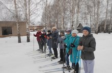 Во время зимних каникул ученики 5 класса с классным руководителем катаются на лыжах на свежем воздухе. -