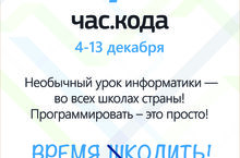 С 4 по 13 декабря 2015 года наша школа примет участие в одном из крупнейших образовательных событий – второй Всероссийской акции «Час кода». Акция направлена на популяризацию изучения информатики и программирования, а также повышения престижности ИТ-профессий, которые уже сегодня вошли в число наиболее востребованных и высокооплачиваемых на рынке труда.