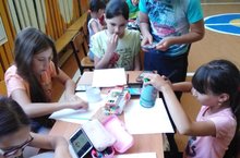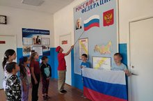 " День России" в пришкольном лагере. Ребята побеседовали о флаге, гербе, гимне России.