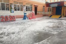 Сегодня в школе идет подготовка к конкурсу ледяных фигурок "Зимние забавы". Учащиеся нашей школы сделали из снега Деда Мороза, Снегурочку и крысу-символ наступающего года