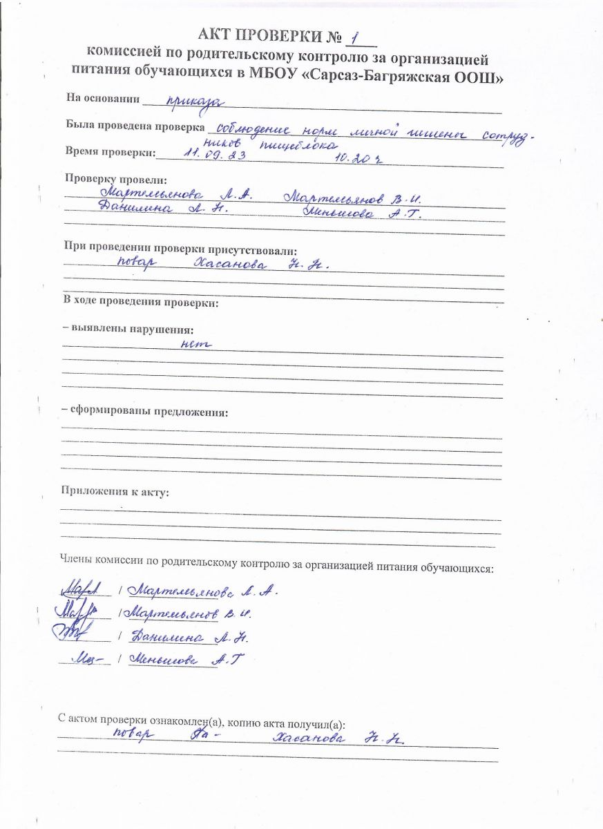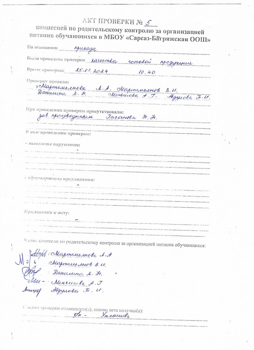 Приказ о создании комиссии по контролю за организацией и качеством питания