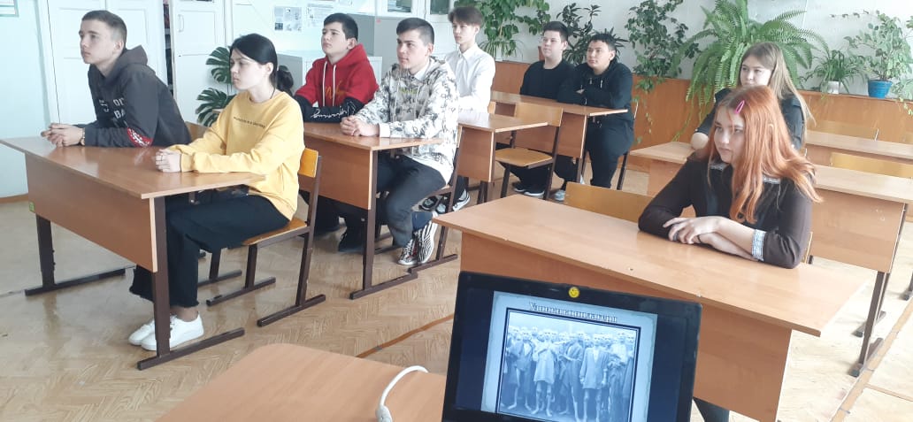 19 апреля в классах были проведены классные часы в память о геноциде советского народа нацистами и их пособниками в годы ВОВ. Целью Дня единых действий является сохранение исторической правды о преступлениях нацистов и их пособников в отношении мирных советских граждан в годы Великой Отечественной войны на оккупированной территории.
