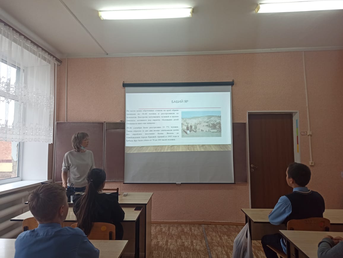 В 5,6 классах учащиеся посмотрели мультимедийную презентацию, обсудили понятие «геноцид», окунулись в историю одной из самых страшных трагедий прошлого времени.