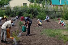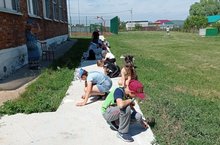 Трудовые будни пришкольного лагеря труда и отдыха "Муравейник" (полив и прополка растений).