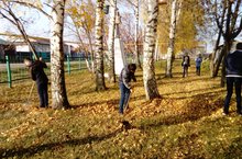 Сегодня ребята вышли на средник для уборки листьев на школьной территории.