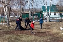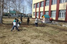 Педагоги и ребята начали приводить в порядок территорию вокруг школы. Они вышли на так называемый средник...С мешками и граблями вышли учителя и учащиеся села.
